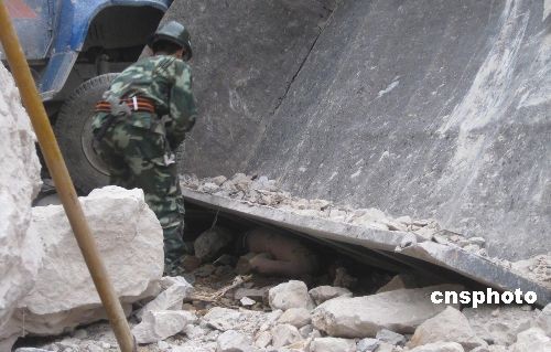圖為消防員在一輛被砸爛的大貨車下發現最后一名被困人員的遺體。