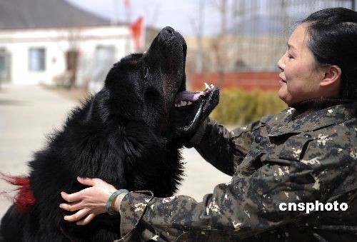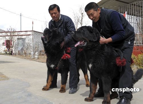 2009年春,西藏拉薩市郊,西藏藏獒協(xié)會養(yǎng)殖基地兩頭名為“喜馬”和“拉雅”的喜馬拉雅河谷型藏獒嬉戲。曾有客戶出價數百萬元人民幣都未能如愿能買走“喜馬”。據了解,全世界像“喜馬”這樣的純血統(tǒng)藏獒不到200只,全西藏也只有20只左右。 牦牛、禿鷲與藏獒被稱為西藏三寶。中新社發(fā) 廖攀 攝