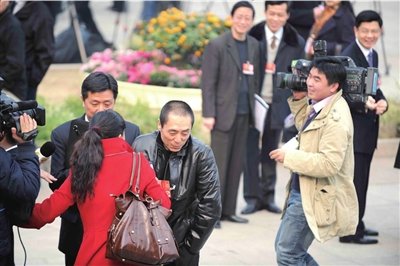 下午2點半,委員們乘坐的大客車剛停在廣場上,恭候多時的記者們便站在馬路對面開始尋找采訪目標。梅葆玖、倪萍、姜昆、濮存昕、黃宏等明星還未走過斑馬線,就被熱情的記者攔住去路,他們也只好笑盈盈地侃侃而談起來。
