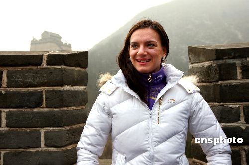 3月4日,撐桿跳高女皇、俄羅斯名將葉琳娜·伊辛巴耶娃游覽北京居庸關長城。伊辛巴耶娃此次來華是與中國某著名體育品牌公司簽約,成為其新的產品代言人。中新社發 富田 攝
