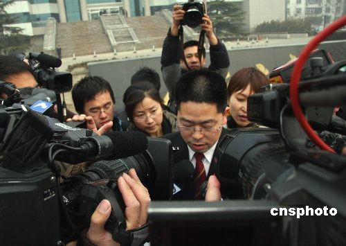 3月4日,三鹿集團(tuán)部分破產(chǎn)資產(chǎn)在河北石家莊市中級法院公開拍賣。石家莊中級法院新聞發(fā)言人王偉向媒體宣布,三元集團(tuán)與三元股份全資子公司河北三元以6.165億元人民幣拍得三鹿資產(chǎn)。圖為新聞發(fā)布現(xiàn)場。中新社發(fā) 翟羽佳 攝
