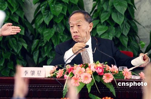 3月4日,十一屆全國人大二次會議在人民大會堂一樓新聞發布廳舉行新聞發布會,大會發言人李肇星在回答中外記者提問時,手中拿著一本《中華人民共和國憲法》。中新社發 杜洋 攝