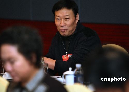 全國政協委員、著名小品演員魏積安,3月6日參加全國政協文藝界小組討論會。中新社發 宋吉河 攝