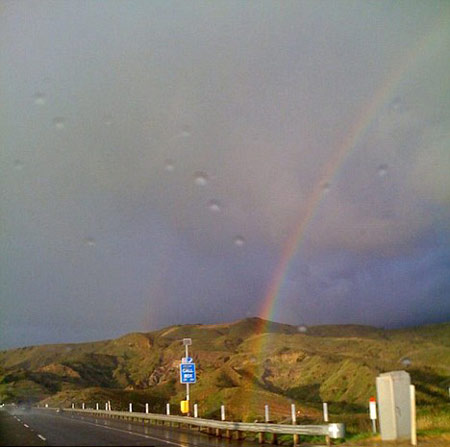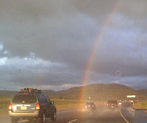 彩虹的“尾巴”。一名美國男子幸運的用手機拍下了彩虹盡頭的照片。這位男子名叫杰森·埃德卡姆普,是一名業余攝影師。09年2月7日,他駕車行駛在高速公路上的時候,幸運的捕捉到了彩虹的“尾巴”。