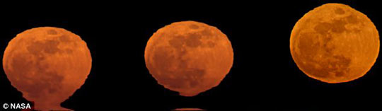 月亮的“融化”。一位名叫約翰·斯特森的美國業余攝影師拍攝到一組月亮蜃景的壯觀照片。這種罕見的天文現象是因不同溫度的層層空氣使月光彎曲形成的。