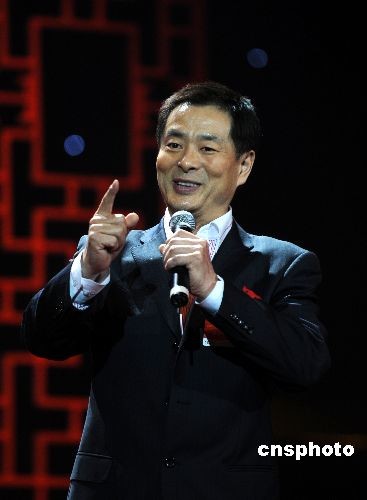 全國政協委員、著名演員濮存昕正在朗誦詩歌《春天的邀請》。中新社發 宋健浩 攝
