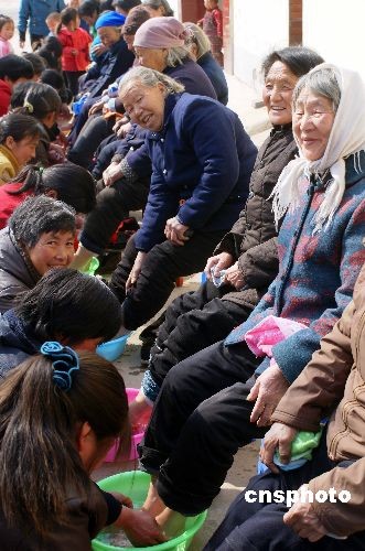 圖:河南濟(jì)源媳婦們?yōu)槠牌偶w洗腳(2)