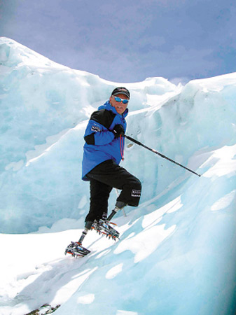 “無腿人”征服世界最高峰。47歲的新西蘭人馬克·英格利斯于2006年曾成功登頂珠穆朗瑪峰,成為世界上第一位登上世界最高峰的雙腿殘疾者。英格利斯是一個傳奇人物。1982年,在攀登新西蘭最高峰庫克峰時,他的雙腿被凍壞。截肢后的英格利斯改練自行車,并獲得殘奧會銀牌。但是,他從未放棄登山夢想,終于在2006年5月15日夢想成真。用英格利斯妻子的話說,“登頂那一刻,他摸到了天”。