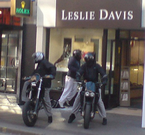 中新網3月8日電 據英國媒體報道,6日,一群摩托黨在倫敦最繁華的大街上搶劫了一家珠寶店。這已經是該團伙第二次做案。實施搶劫的有4人,都戴著頭盔以隱藏面部,目擊者表示他們看上去不過是學生年紀。搶劫時,其中兩人沖進店里,用大錘砸碎櫥窗玻璃,拿走里面的手表和珠寶;另外兩人則一直開著引擎,等前者跳上車后即迅速離開。