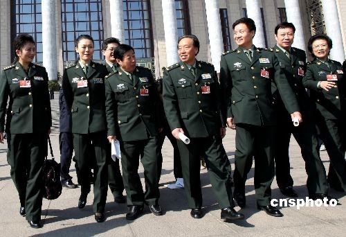 3月8日,全國政協十一屆二次會議舉行第三次全體會議。圖為軍界委員在會議結束后步出大會堂。中新社發 傅丹丹 攝