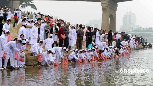 圖:南寧女性慶“三八”放生百萬魚苗