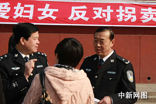 3月8日,一名婦女正尋求幫助。當(dāng)日,甘肅警方聯(lián)合婦聯(lián)宣傳法律知識,旨在提高公眾反拐賣意識。