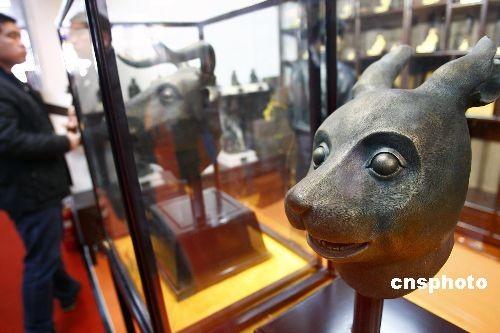 3月9日,第十九屆北京國際禮品工藝品暨家用精品展會在北京國際貿易中心開幕。本屆展會總面積達15000平方米,共有800多個展位,匯集了700多家參展商,適合不同人群的需求,讓市民可以體驗一站式采購的服務。圖為“圓明園十二生肖獸首”--卯兔(仿制)亮相禮品展吸引不少市民的目光。中新社發 鄭雄增 攝
