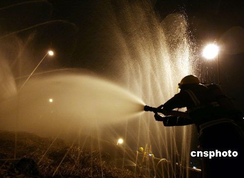 圖為救援人員作緊急稀釋處理。中新社發(fā) 袁帆 攝