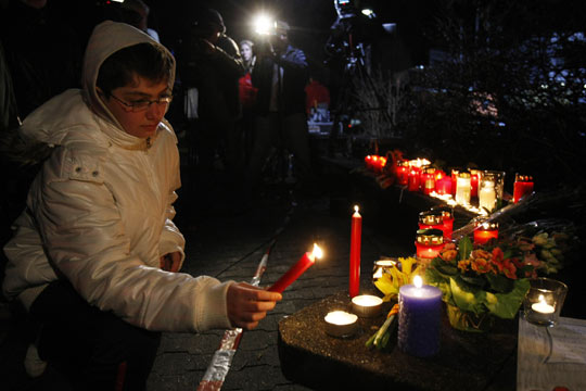 德國總理默克爾和德國聯邦政府對這起校園槍擊案“感到震驚”,對遇難者家屬表示慰問。默克爾當天在新聞發布會上說,11日是全德國的“哀悼日”。 圖為群眾正在悼念校園槍擊案的亡者。