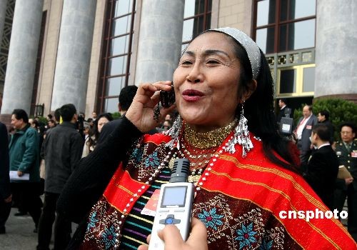 圖:政協(xié)閉幕 佤族委員和家人通電話