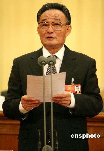 3月13日,第十一屆全國人民代表大會第二次會議在人民大會堂閉幕,全國人大常委會委員長吳邦國主持會議。中新社發 任晨鳴 攝