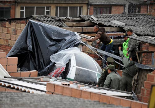 圖:哥倫比亞一警用直升機墜入民房(3)