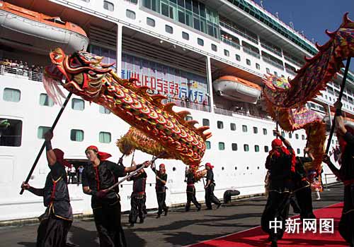 三月十六日上午八時二十分許,“安利心印寶島萬人行”首航郵輪“海洋神話號”載著一千六百名安利中國大陸首發(fā)人員緩緩駛進(jìn)臺灣基隆港。這是兩岸基本實(shí)現(xiàn)“三通”以來第一個抵臺的郵輪直航團(tuán)。中新社記者 陳立宇 攝