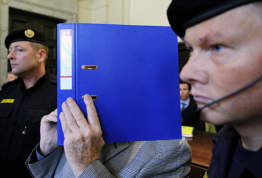 3月16日,奧地利獸父約瑟夫禁錮親生女兒伊莉薩白當性奴24年的案件,今日開審。現年73歲的奧地利男子約瑟夫·弗萊茨勒在兩名法警的押送下一路用文件夾掩面走入法庭。