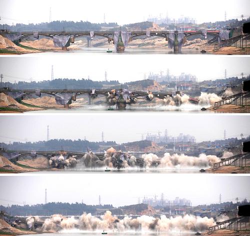 3月17日,橫跨長沙市澇刀河上的長湘公路廖家渡大橋成功爆破拆除。長湘公路廖家渡大橋長194米,橋面寬9米,為鋼筋混凝土四跨雙曲拱橋,跨徑40余米,始建于20世紀70年代初。2008年11月,廖家渡大橋出現橋墩間拱肋斷裂現象,為防止意外事故出現,長沙市對該橋實行封閉,并決定拆除重建。這次爆破采用分段微差起爆方式,從南向北分9段依次起爆,用時3秒。