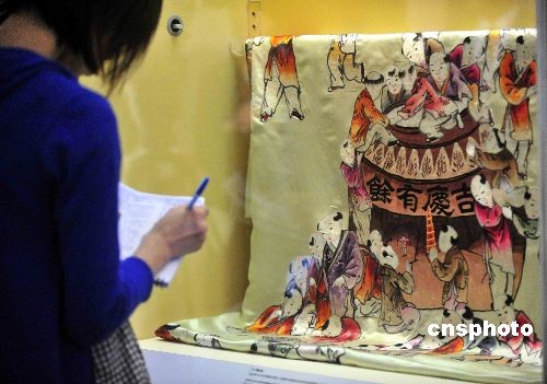 圖為百子圖被面,是孫中山和宋慶齡結(jié)婚后,宋慶齡母親送給他們的結(jié)婚禮物。