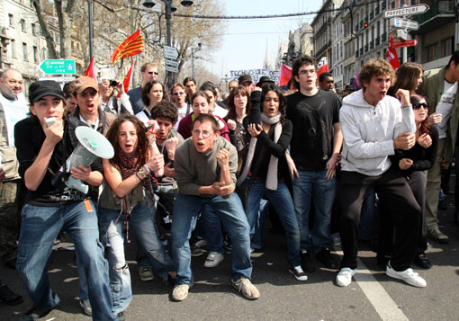 3月19日法國各大工會在全國各地聯合組織罷工和示威游行等活動,抗議政府在應對當前經濟危機過程中忽視勞動者權益和社會福利。