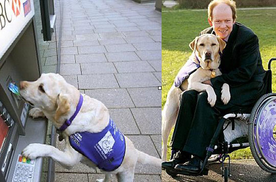 拉布拉多犬車禍救主人 會用ATM機(jī)。據(jù)英國媒體3月14日的報道,在英國漢普郡,前皇家海軍官員艾倫□帕頓同一只拉布拉多犬生活了近12年。這只拉布拉多犬不僅在一場車禍中挽救了主人帕頓的性命,而且還是一位幫他做家務(wù)的好手。據(jù)悉,這只拉布拉多犬名叫昂德(Endal)。在日常生活中,它會認(rèn)真幫助主人做家務(wù),如清空洗衣機(jī)中的衣服和前往商店購物。在主人的調(diào)教下,拉布拉多犬昂德還會熟練操作自動取款機(jī)取出固定數(shù)額的錢,郵寄信件,以及遞送手機(jī)。