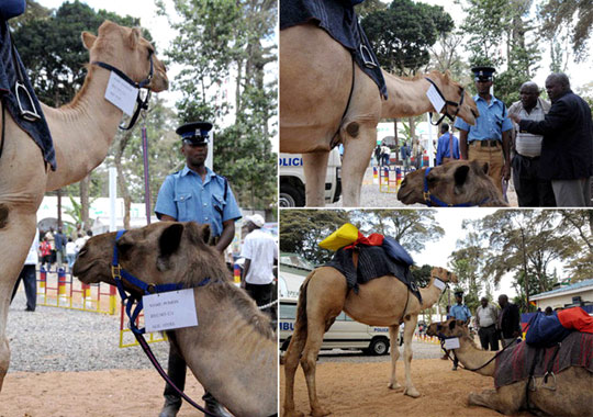 肯尼亞500多頭駱駝為警方工作?夏醽喚皆谑锥純攘_畢舉辦活動邀請市民參觀警營和警用設備,其中警用駱駝作為肯尼亞警方的特殊成員也與市民見面。目前約有500多頭駱駝為肯尼亞警方工作,它們都有自己的名字和專門看護人員,在肯尼亞北部的沙漠和半沙漠地帶發揮著重要作用。