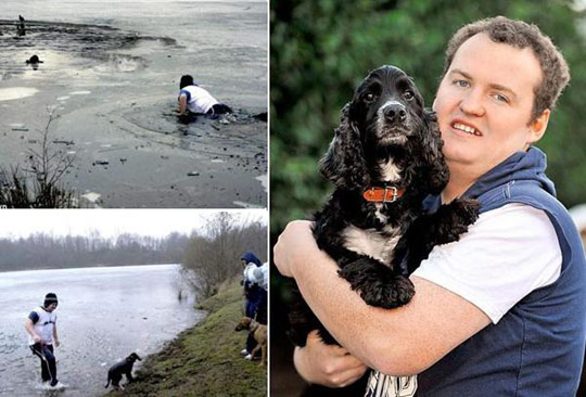 狗主人破冰救寵。據(jù)英國媒體報道,有時人類最好的朋友也需要朋友。因此,當(dāng)馬克(Marc Greenhalgh)的可卡犬賈維斯(Jarvis)被困在結(jié)冰的湖中時,他義無反顧的跳進(jìn)去拯救它。