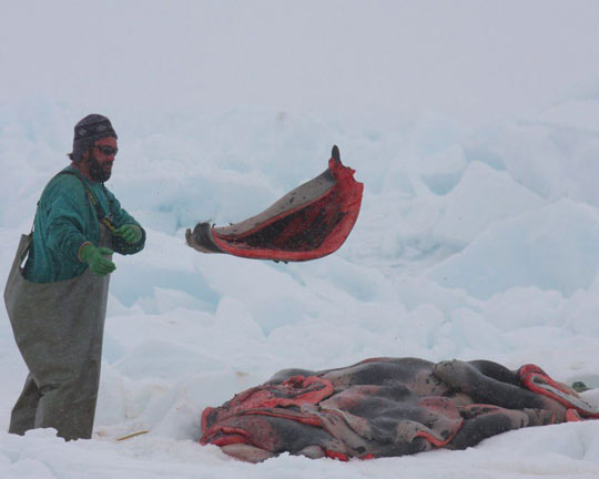 獵人搬運(yùn)海豹肉。