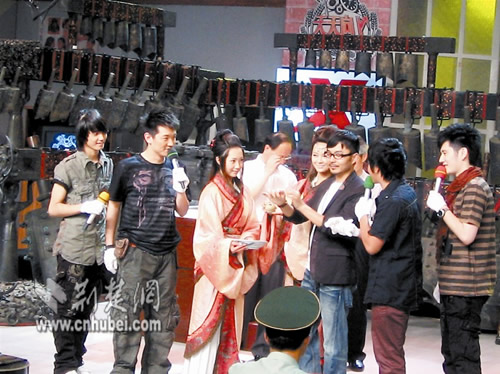 19日,在湖北出土的六件重量級(jí)文物——越王勾踐劍、曾侯乙編鐘以及雙耳金杯等,一齊亮相湖南衛(wèi)視的熱播欄目《天天向上》的錄播現(xiàn)場(chǎng)。汪涵、歐弟、田源、錢楓和韓國明星小五,以其一貫的幽默、活潑的主持風(fēng)格,把沉重靜謐的文物活靈活現(xiàn)地推介給了電視觀眾。