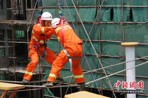 “挑戰(zhàn)極限 超越自我”,為增強(qiáng)消防官兵心理健康素質(zhì)和提高調(diào)適能力,福建寧德市公安消防18日開(kāi)展了一場(chǎng)驚險(xiǎn)刺激的高空心理拓展訓(xùn)練,進(jìn)行了“空中相依”、 “飛奪瀘定橋”、“巨人梯”等項(xiàng)目高空心理行為拓展訓(xùn)練。據(jù)悉,福建寧德市公安消防支隊(duì)注重官兵心理健康,近來(lái)專門(mén)投入40余萬(wàn)元建成了心理行為拓展訓(xùn)練基地。