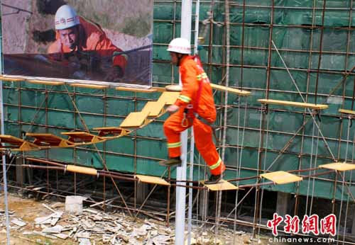隨著消防部隊(duì)承擔(dān)社會(huì)救助范圍的不斷擴(kuò)大,滅火救援、搶險(xiǎn)救災(zāi)和處置突發(fā)事件的復(fù)雜性及不可確定性因素不斷增加,加強(qiáng)心理拓展訓(xùn)練,成為消防部隊(duì)一項(xiàng)緊迫而又新型的課題。 (唐海波 攝)