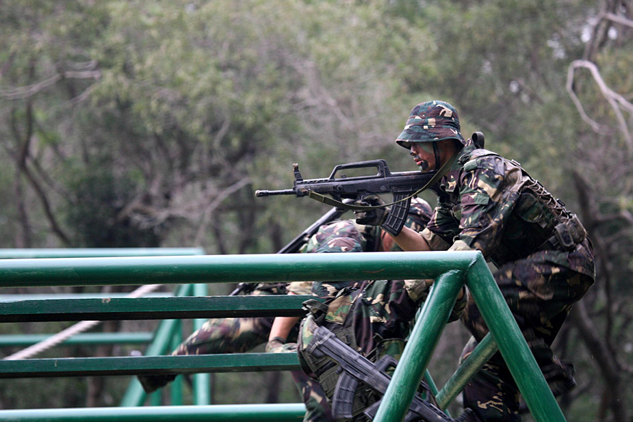 本網(wǎng)記者近日在中國(guó)人民解放軍駐香港部隊(duì)石崗營(yíng)區(qū)訓(xùn)練場(chǎng),觀看了駐港部隊(duì)偵察兵實(shí)彈突擊演練。身穿迷彩服、面涂油彩的戰(zhàn)士們冒著“槍林彈雨”,背負(fù)槍械攻克障礙,其間穿越火障、跨越滑橋、潛灘暗渡,更肩扛一百公斤的圓木進(jìn)行二百米極限沖刺。這些障礙項(xiàng)目是對(duì)戰(zhàn)士意志、體力與心理的多重磨練,連續(xù)通過(guò)二十一個(gè)項(xiàng)目,更是挑戰(zhàn)體能的極限。鄭祚聲 攝