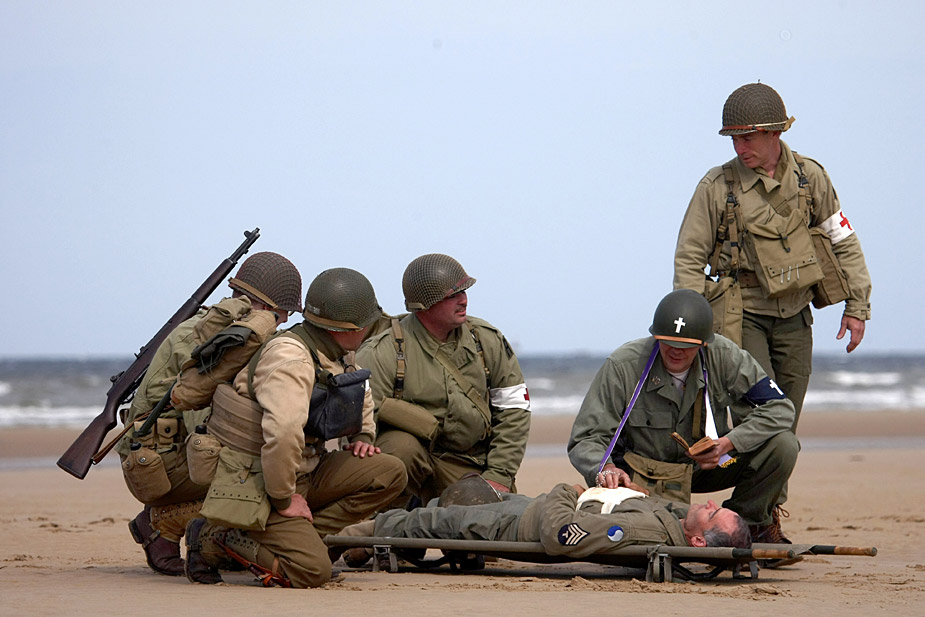 美英法等國士兵穿上二戰時期軍服在法國諾曼底海灘舉行“登陸戰”紀念諾曼底登陸65周年。