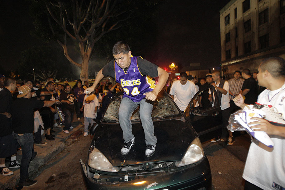 在洛杉磯湖人隊15日奪得本年度NBA總冠軍后,洛杉磯球迷涌上街頭歡慶勝利,但在慶祝過程中偶發暴力事件,警方逮捕了至少8人。