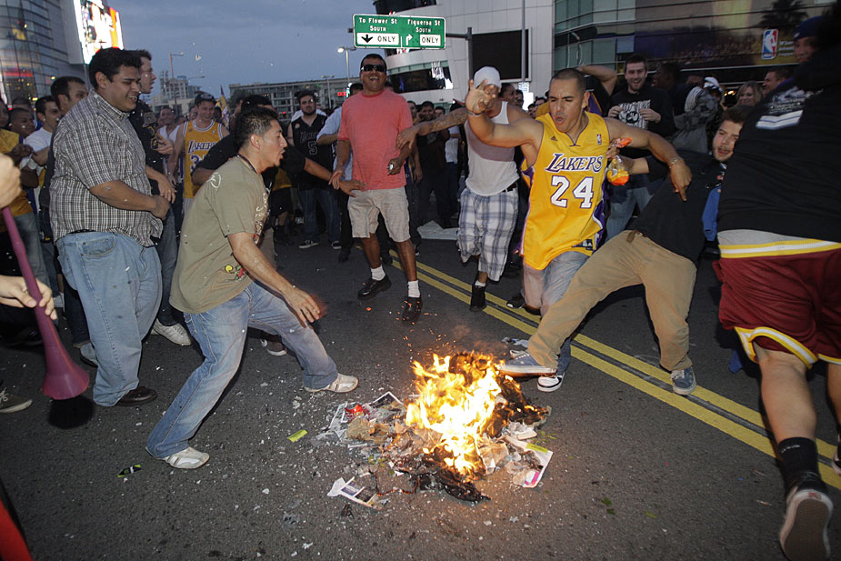 在洛杉磯湖人隊15日奪得本年度NBA總冠軍后,洛杉磯球迷涌上街頭歡慶勝利,但在慶祝過程中偶發暴力事件,警方逮捕了至少8人。