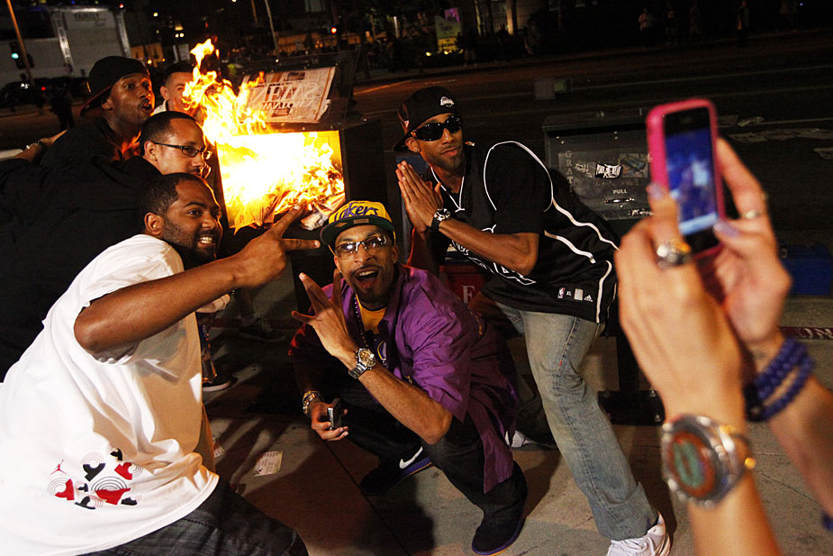 在洛杉磯湖人隊15日奪得本年度NBA總冠軍后,洛杉磯球迷涌上街頭歡慶勝利,但在慶祝過程中偶發暴力事件,警方逮捕了至少8人。