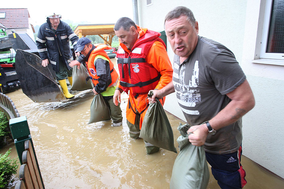 6月24日,奧地利部分地區由于連日降雨發生洪災。當地消防人員緊急出動,用各種工具將災民運往安全地帶。