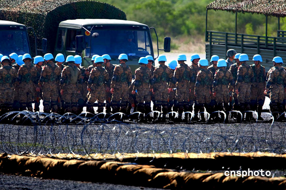 中國人民解放軍首次與外軍舉行以維和為主題的聯合訓練,行動代號為“維和使命--2009”。中新社發 宋吉河 攝