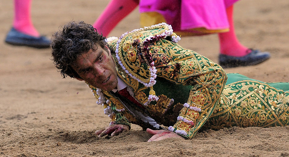 7月5日,西班牙巴塞羅那舉行了一場驚險的斗牛比賽,一位斗牛士在與牛較量時被牛頂起,所幸該人“武功”高強未造成大的傷害。