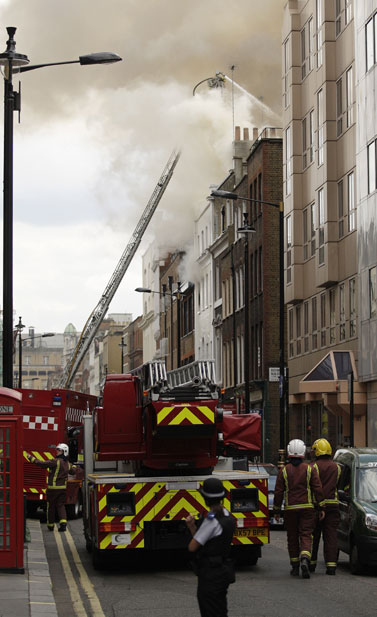 英國倫敦中部蘇豪區在當地時間10日下午2時左右發生火警,起火的5層高商業樓宇被嚴重焚毀,現場冒出大量濃煙,在倫敦市內多處均清楚可見。消防部門派出12輛消防車及60名消防員進行灌救。