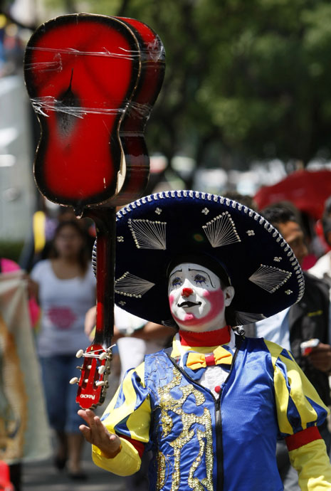 7月22日,幾百名“小丑”聚集在墨西哥首都墨西哥城的街頭參加一次小丑大游行,給人們帶來了歡聲笑語。