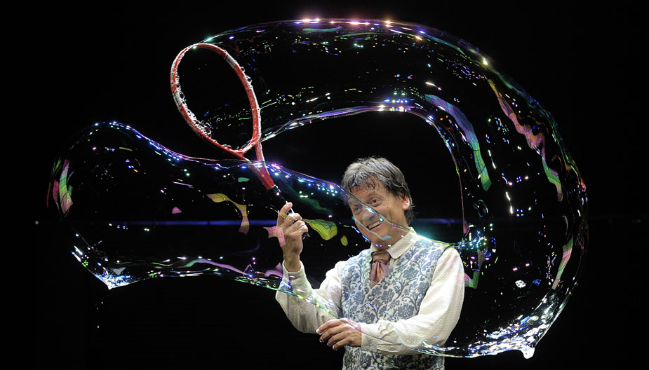 當地時間7月23日,西班牙國際肥皂泡藝術家皮蓬-玻爾在巴塞羅那進行肥皂泡藝術表演。