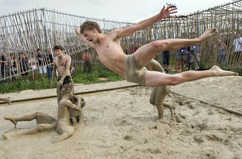 7月24日,在瑞士尼翁舉行的第34屆帕里奧音樂節上,狂熱的音樂迷們在欣賞音樂的同時還盡情的享受了一下“泥漿浴”。