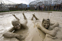 狂熱音樂迷盡享泥漿浴