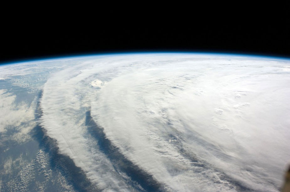 英國媒體近日公布了一組衛(wèi)星上拍攝到的地球自然景觀的照片,領(lǐng)觀者頗感震撼。圖為從衛(wèi)星上拍到的颶風(fēng)產(chǎn)生的氣流。
