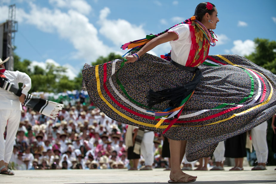 7月27日,墨西哥瓦哈卡舉行“蓋拉蓋查”傳統節日慶典。該節又叫“互相贈與”節,是一個展現印第安部落文化、分享部落間土特產的大型節日慶典。