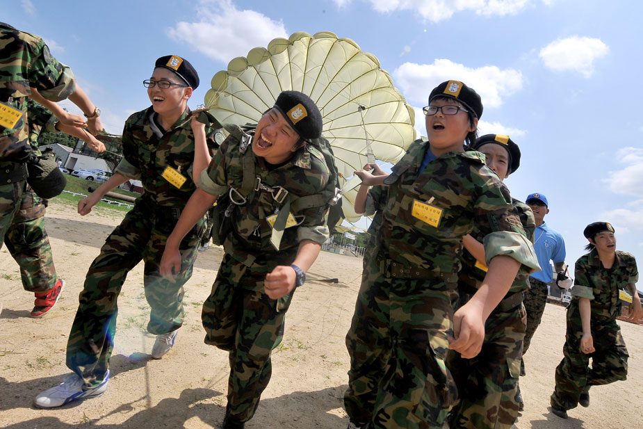7月29日,韓國數百名學生和市民在位于首爾的美軍基地參加軍訓夏令營,此次軍訓夏令營共為期四天。